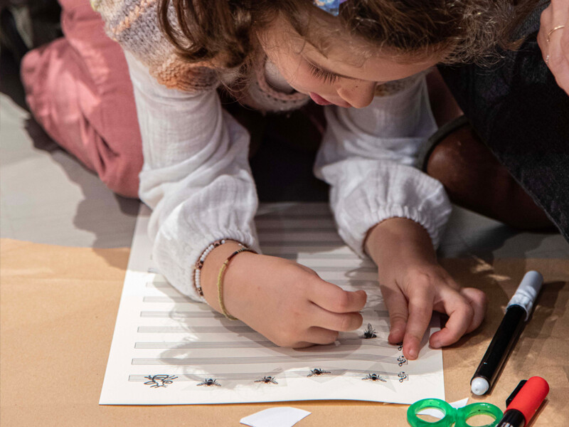 Durante la visita guidata i bambini viaggeranno, in mezzo a tante cancellature, tra farfalle in volo, laboriose formiche in movimento continuo, sciami di api che intonano inni, insetti del Suriname e semi d’arancia giganti. Sono tutti simboli che Emilio Isgrò sceglie per rappresentare la collettività, la metamorfosi, la rinascita e più in generale il rapporto tra uomo e natura. Ogni bambino potrà scegliere dove fermarsi nel percorso della mostra per costruire la sua opera ad hoc da portare a casa.